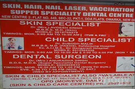 Dr. Avdesh Singh is a best Dermatologist in Dwarka, New Delhi. She has over 21 years of experience as a Dermatologist. She also specializes in Aesthetic Dermatologist, Cosmetologist, Dermatologist, Dermatosurgeon. She has done MBBS, MD - Dermatology. She is a member of Delhi Medical Council. Currently practising at Skin and Child Care Centre, Dwarka, New Delhi. Doctor bestway communicates in English, Hindi with patients. Dr. Avdesh Singh offers a number of medical services include Microdermabrasion, Nebulisation, Growth Monitoring, Biopsy,Botox Injection, Radio Frequency Cauterization By Eliman(U.S.A.) Machine and many more.