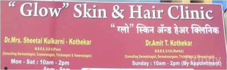 Glow Skin, Hair and Laser Clinic is Well Known clinic located at Kothrud, Pune. Established in the year 2015. Glow Skin, Hair and Laser Clinic is visited by top doctors like Dr. Sheetal Kothekar (Dermatologist).